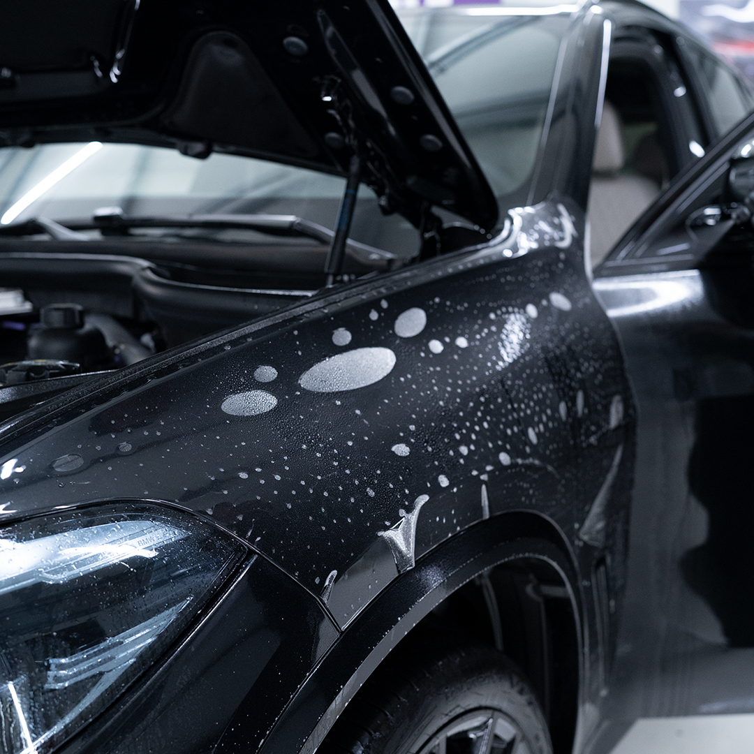 Bardzo nasz cieszy, kiedy stali klienci po kupnie nowego auta decydują się na zabezpieczenie folią w naszym studio. Czarny lakier i zamiar robienia 30 000 km na rok to nie jest dobre połączenie. Aby uniknąć białych kropek/odprysków oraz siatkę drobnych rys na lakierze należy zabezpieczyć takie auto folią ochronną PPF